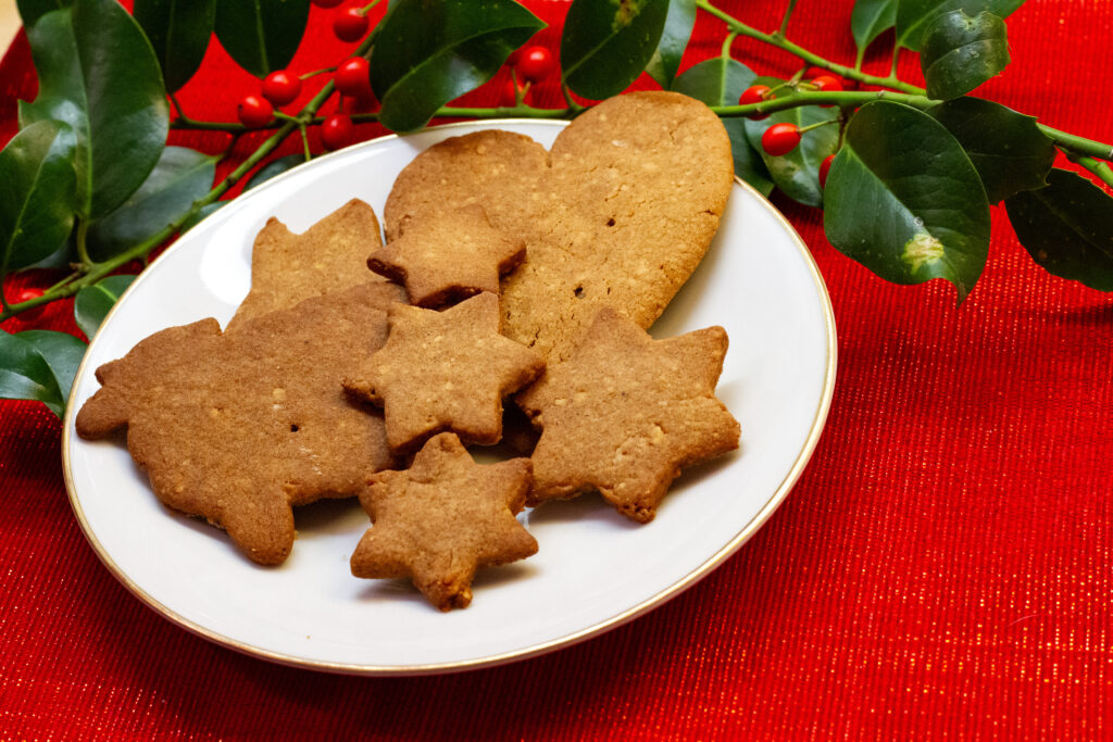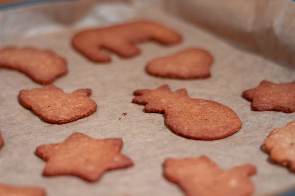 3. Bei 175° auf der mittleren Schiene ca. 8-10 Minuten backen. Die Kekse härten beim Abkühlen nach.